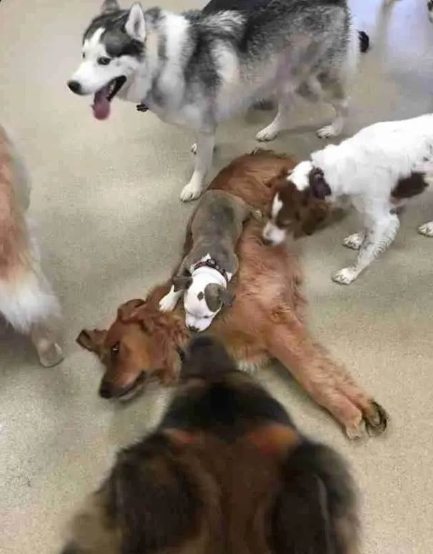 國外一些鏟屎官,在自己上班不能照顧狗狗的時候,就會把狗狗送去「托狗所」,Edna是這所托狗所最小的寶寶。